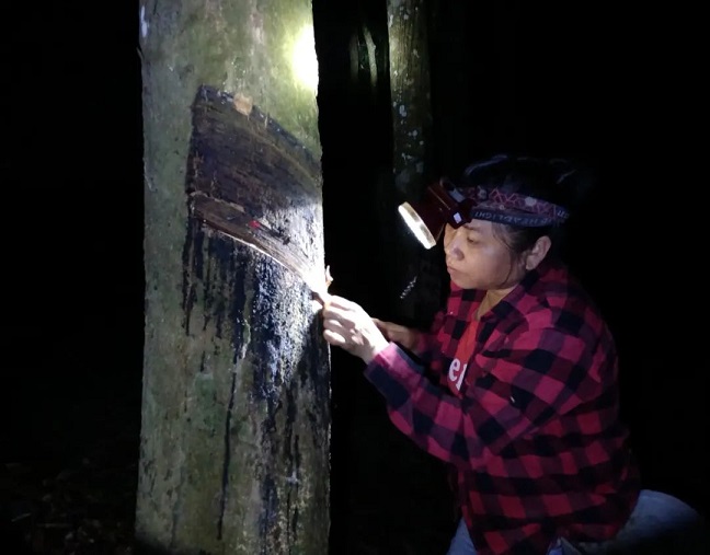 抓干膠,促生產,只為穩定職工隊伍。今年開割以來,黃英梅一直都頂崗割膠。為打消膠工因疫情影響帶來的心理壓力,在抓好日常防疫工作下,黃英梅堅持每天都正常割膠,從不隨意丟刀,打消了膠工們的思想顧慮。其他隊管理員也堅持每天上林段抓干膠生產,做膠工思想工作,穩定膠工隊伍。