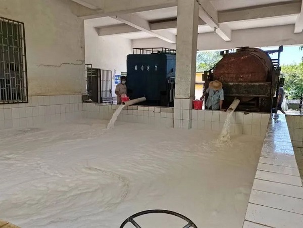 827日早上,西華轉運站膠水回收工作正常有序進行中。